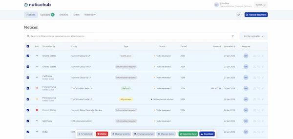 Generate structured Excel reports for audits, internal reviews, and management reporting. This makes it easy to share clear, up-to-date notice summaries without manual reconciliation.