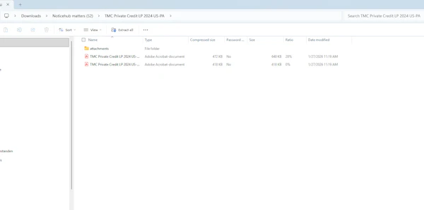 Download notices and related documentation in a structured format that preserves context. Sequential or related notices and attachments are grouped into clearly named folders using consistent naming conventions.
